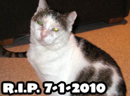 R.I.P. 9/7.08 Shkitty passed away on September 7th, 2008. She will be forever missed by her mom, Cindy. She lived 13 years, but sadly it just wasn't long enough. She was the kind of kitty that left an incredible impression on you. She was incredibly smart and always answered when you called her. She followed her mom all over the place. We believe she suffered from the effects of the Calci virus and her body just couldn't handle it anymore. |